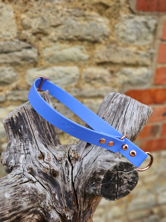Our standard BioThane® collars and leads come fitted with colour-coated zinc die-cast hardware, which is strong, lightweight, and perfectly suited for everyday use, lake swims, mud and puddles.