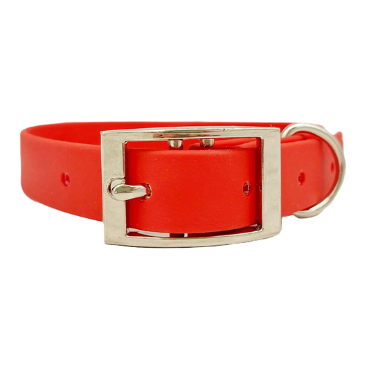 No — BioThane® is hypoallergenic and has a smooth, non-porous surface, making it safe for dogs with sensitive skin while preventing rubbing or fur loss. Many customers find BioThane® collars even more effective than traditional rolled collars at reducing fur loss and matting, thanks to the material’s consistently smooth and dry finish.