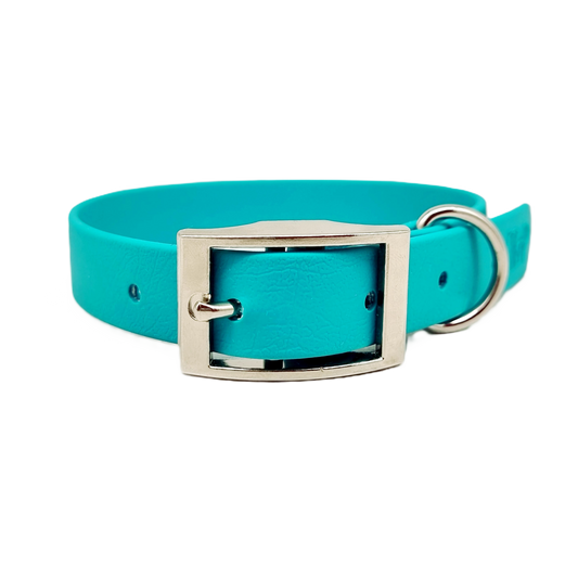 Our standard BioThane® collars and leads come fitted with colour-coated zinc die-cast hardware, which is strong, lightweight, and perfectly suited for everyday use, lake swims, mud and puddles.
