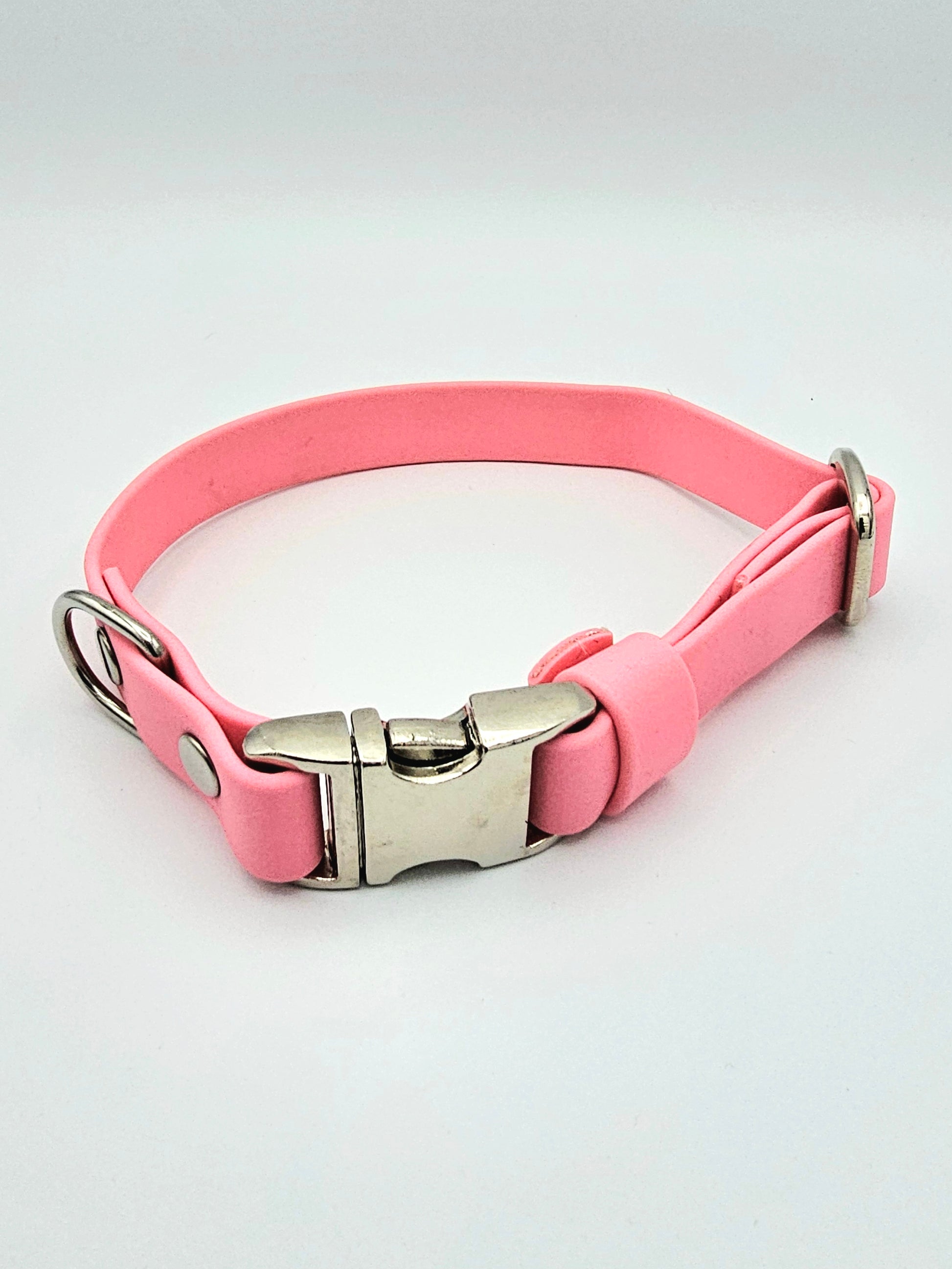 Part of our Everlast Range, this waterproof BioThane® Quick Release Collar in our Baby Pink BioThane materialcolour, it is designed for seaside adventures and active dogs who need durable gear that lasts. Combining our premium BioThane® webbing with our lightweight marine-grade Aluminium Quick-release buckles and stainless steel fittings, this collar offers maximum strength, corrosion resistance, and long-term reliability.